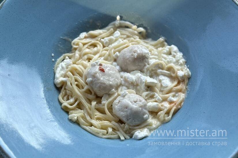Спагетті на перепелиних яйцях з курячими фрикадельками