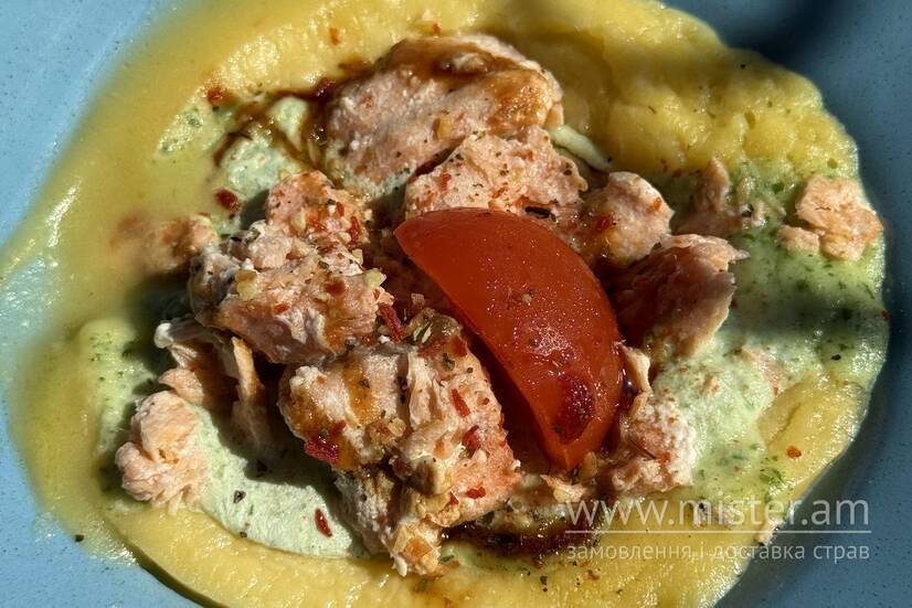 Борщ & Бургер Філе лосося з картопляно-гарбузовим пюре