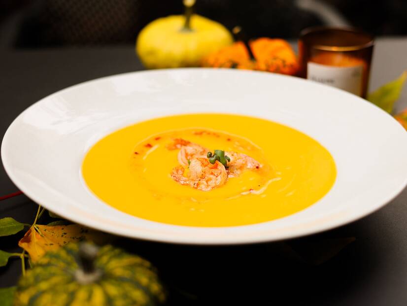 Гарбузовий крем-суп з креветками