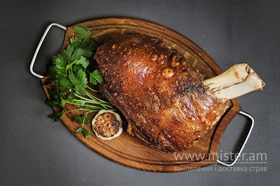 Реберця в медово-соєвому соусі з картоплею фрі та соусом чілі