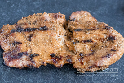 Шийна частина свинини – безсумнівно, одна з найніжніших частин м’яса. Перед смаженням на хоспері маринується в молоці та спеціях.