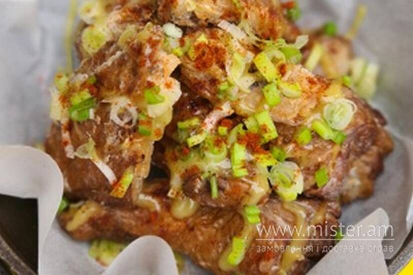 Пряні курячі крильця в хрусткій паніровці запечені до золотистого кольору з медово-гірчичним соусом.