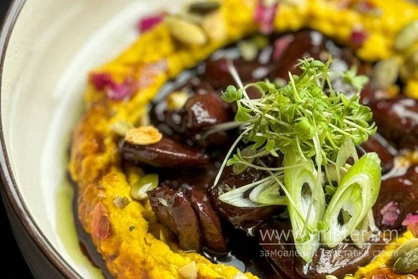 Тушковані в ягідному квасі. Подаються з хумусом.