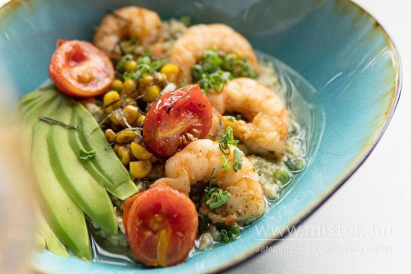 Cafe de Vino Вівсяна каша зі шпинатом та креветками