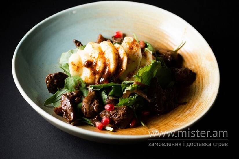 Теплий салат з печінкою
