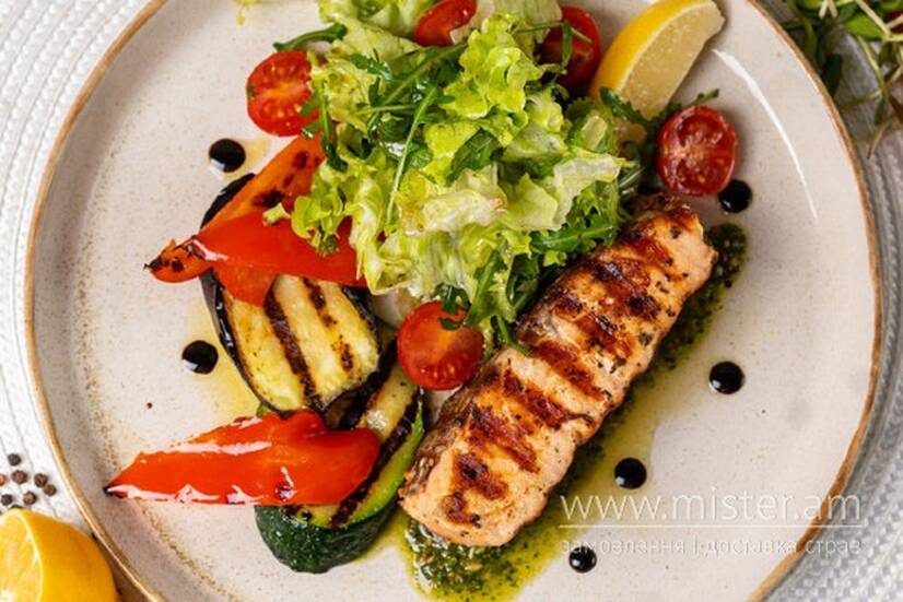 З цукіні, баклажанами, мікс-салатом та болгарським перцем.