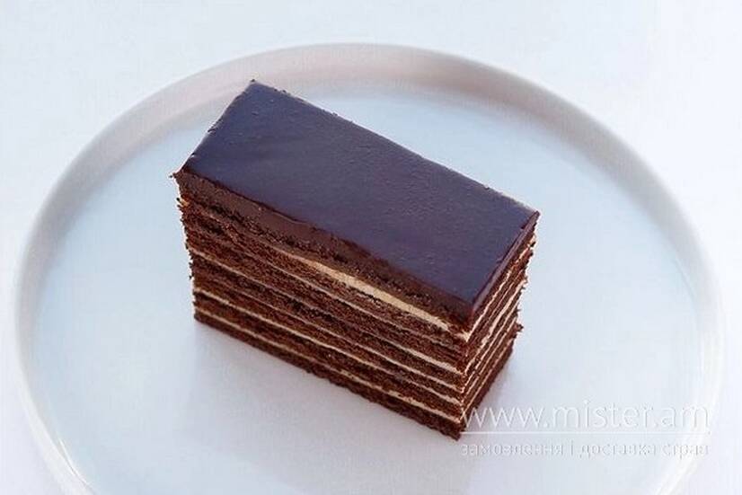 Ніжне поєднання шоколадних медових коржів і заварного крему. Ідеальний баланс солодкості, легка нотка ванілі та насичений шоколадний смак.