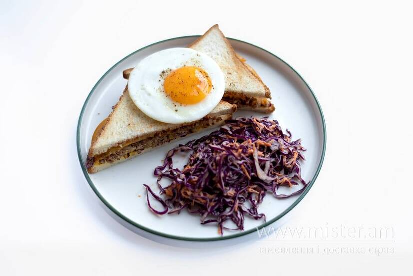 Сендвіч з яловичою котлетою та окатою яєчнею