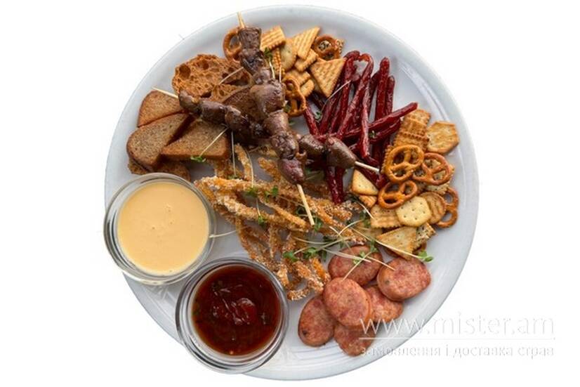 Закуска з крученого сала з корнішонами та бородинським хлібом