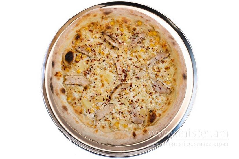 Сир, вершкова основа, куряче філе, кукурудза, ананас.