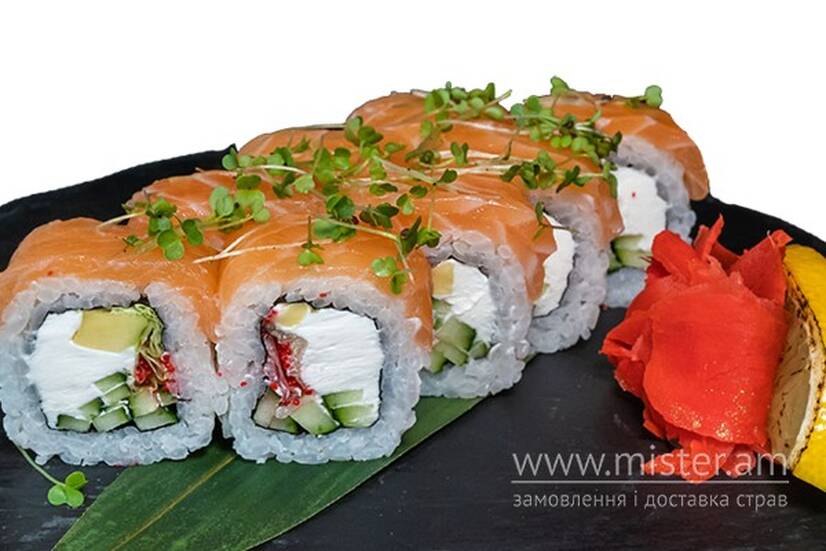 Суші: Рол "Філадельфія з тунцем та Тартаром з вугря", Рол "Темпура", Рол "Філадельфія з сиром XL", Рол "Каліфорнія" з креветкою темпура, Рол "Каліфорнія" з вугрем, Рол "Каліфорнія" з лососем, Рол "Філадельфія" з лососем та ікрою Тобіко, Рол "Філадельфія" з вугрем, Рол "Філадельфія" з креветкою спайсі, Мікс рол, Запечений рол, Рол в чорному клярі з тигровою креветкою, Печений чорний рол з куркою та сирною шапочкою