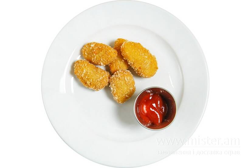 Філе куряче, яйце, борошно, сухарі панко, кетчуп.