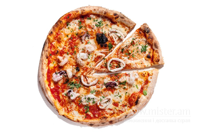 Томатний соус, сир голандський, кальмар, креветка тигрова, восьминіг, оливкова олія, сіль, перець, зелень петрушки, часник, базилік сухий.