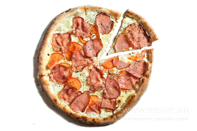 Вершки, сир, шинка, помідор, соус сан маріньйо, олія, часник свіжий, базилік сухий.