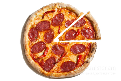 Томатний соус, сир, салямі, перець паперончіно, базилік сухий.