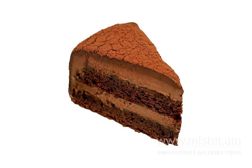 Шоколадний брауні на основі шоколаду без вмісту тваринних жирів, пюре пряного апельсина та ганаш на основі чорного шоколаду, чаю з бергамотом та рослинних вершків, покритий глазурʼю з чорного шоколаду та посипаний какао.