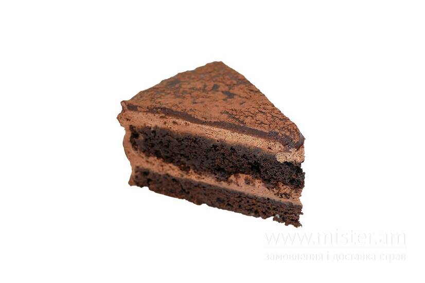 Шоколадний бісквіт на основі чорного шоколаду без вмісту тваринних жирів, абрикосовий джем та шоколадний ганаш на основі чорного шоколаду, чаю з бергамотом та рослинних вершків, покритий глазурʼю з чорного шоколаду та посипаний какао.