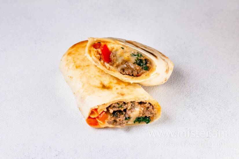 Соковита запечена яловичина з ароматним соусом барбекю, в поєднанні з болгарським перцем, маринованим огірком, сиром моцарела та свіжою кінзою, загорнуті в м`яку пшеничну тортилью. Насичений смак із легкою димною ноткою — справжня насолода у кожному шматочку!