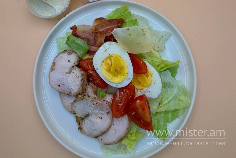 Соковите куряче філе су-від, хрумкий айсберг, відварене яйце, чері, пармезан, пшеничні сухарики та смажений бекон — усе це щедро приправлене фірмовим соусом Цезар. Класика, яка завжди влучає в саме серце!