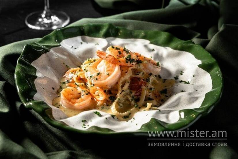 В соусі з білого вина, часнику, цибулі петрушки, чилі та чері.
