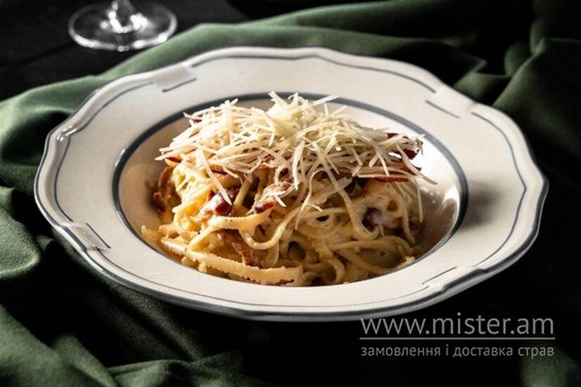 Паста фреска, гуанчіале, пармезан, перець, жовток.