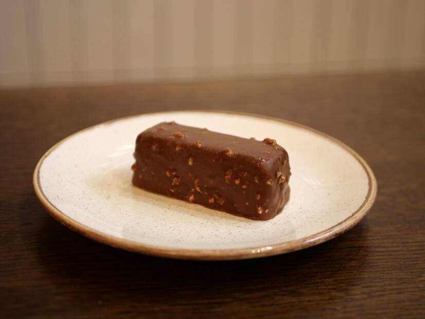 сир із фундуковим праліне в шоколаді Rocher — ніжний, кремовий, з хрумкими горіховими нотами.