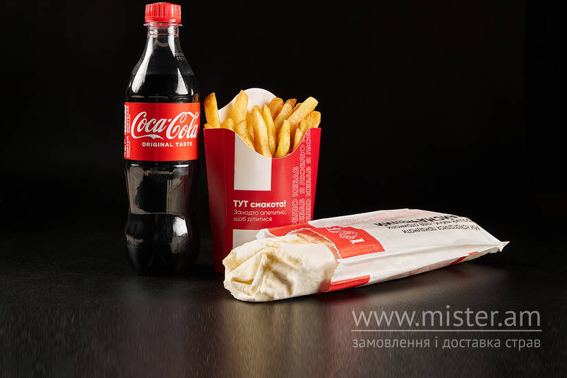 Кебаб часниковий L, картопля фрі L, вода в асортименті 0,5.