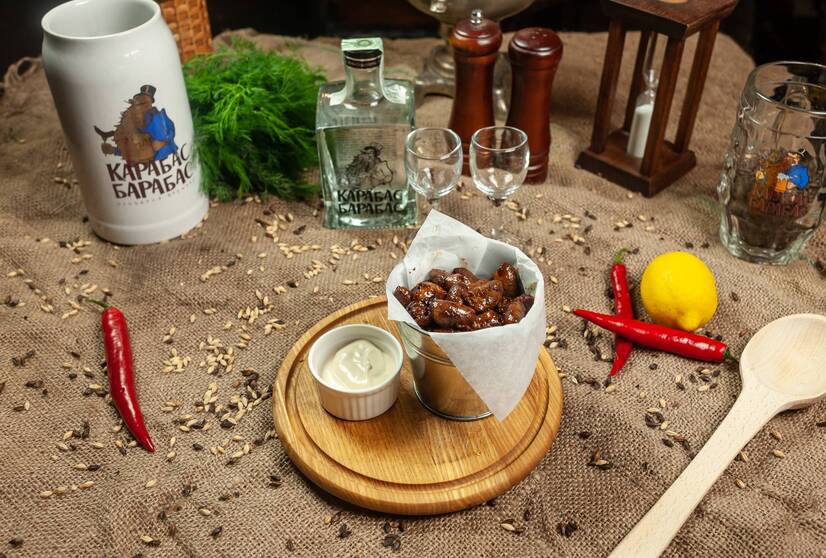 Курячі сердечка (пікантні смажені курячі сердечка в суміші перців та карамелізовані в меді)