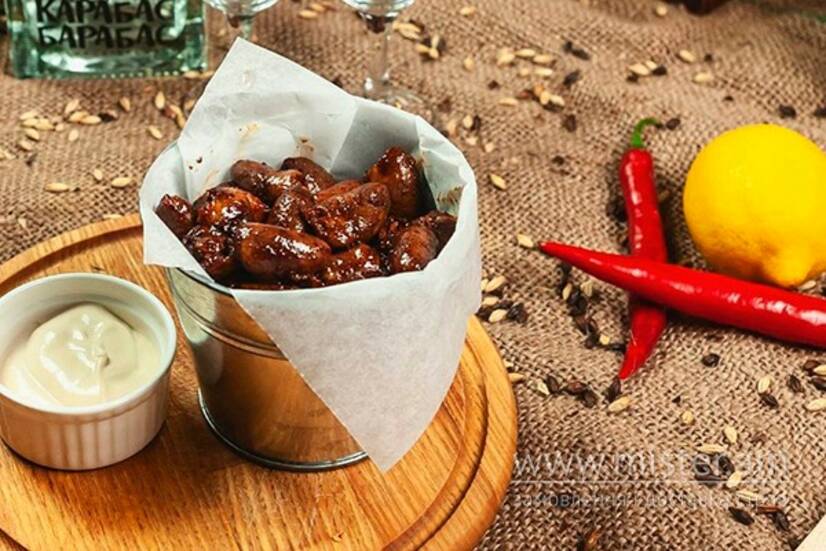 Курячі сердечка (пікантні смажені курячі сердечка в суміші перців та карамелізовані в меді)