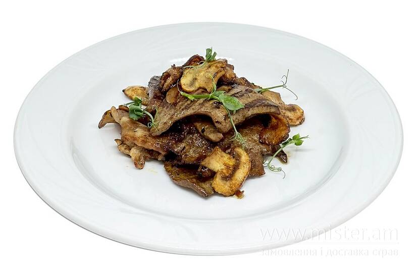 Печінка теляча з беконом та грибами (за 100 г)