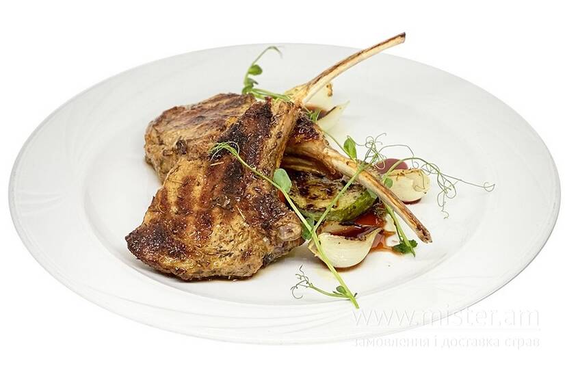 Каре телятини, соус гранатовий, цибуля ріпчаста, сіль, перець чорний мелений.