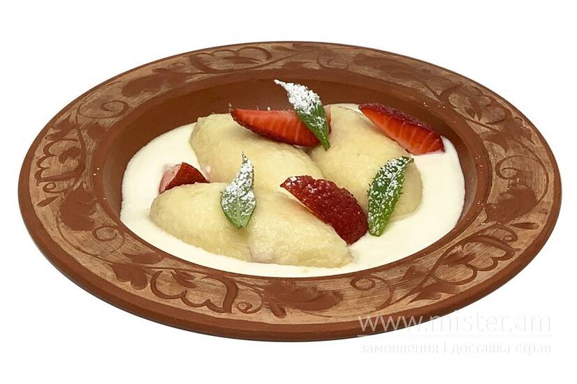 Кисломолочний сир з ягодами та солодкою сметаною.