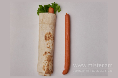 Хот дог в лаваші з молочною сосискою та соусами (майонез, кетчуп, гірчиця).