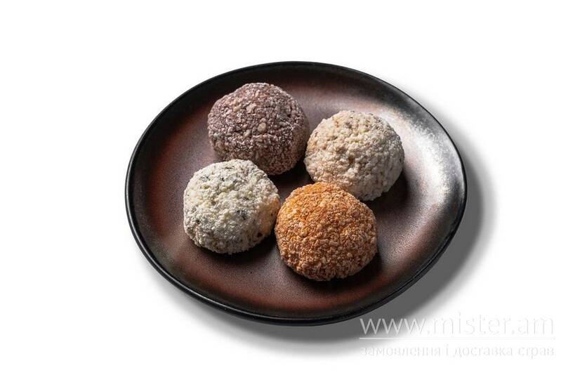 Автентична локальна закуска, сушені сирні кульки зі спеціями/травами. Сет з чотирьох смаків.