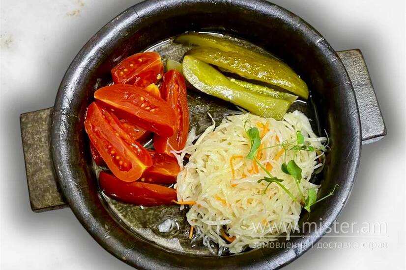Українське поєднання квашенини з огірків, помідорів та капусти.