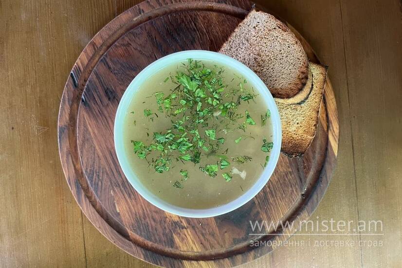 Ароматно наваристий курячий бульйон з локшиною та зеленню.