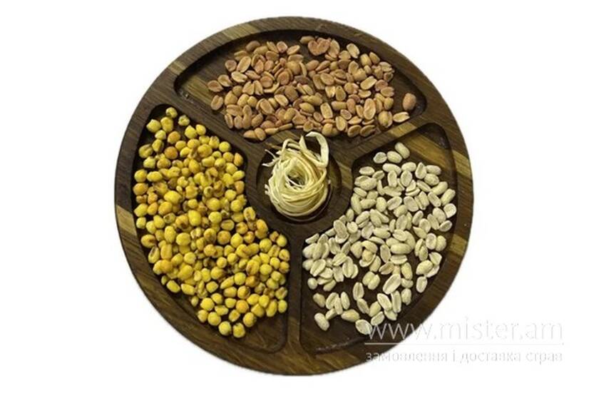 Арахіс, кукурудза мед-гірчиця, сир Чечель рваний.