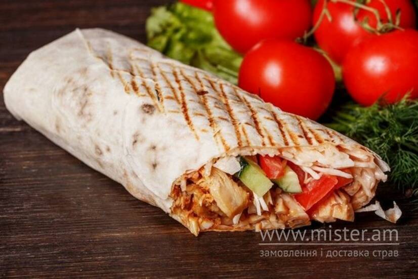Лаваш, м`ясо, бекон, картопля фрі, овочі, фірмові соуси.