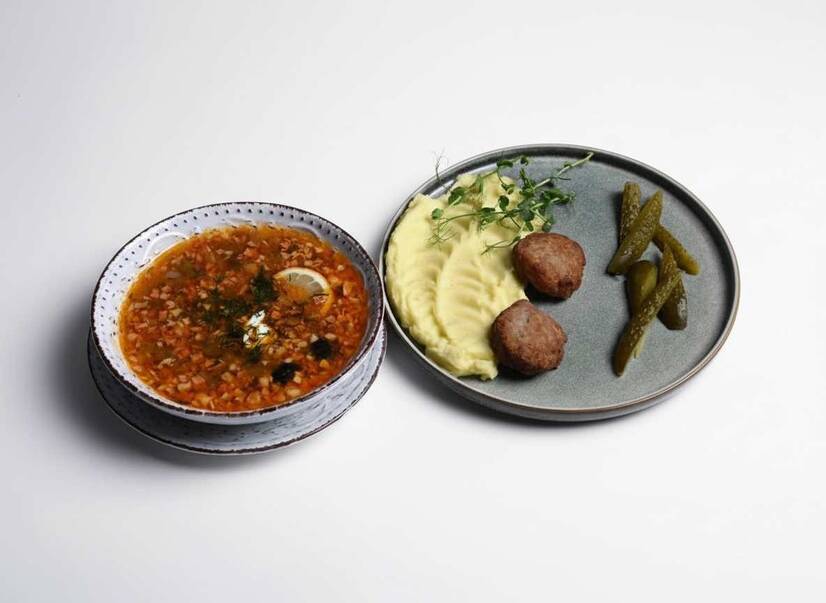 MANGO Солянка та свинні котлети з картоплею пюре