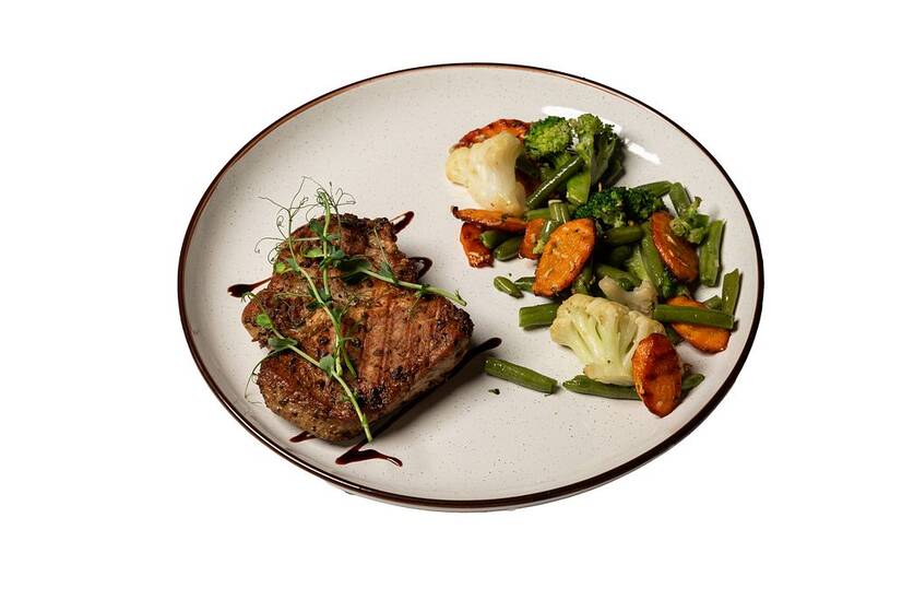 MANGO Стейк зі свинини та салатом з овочів гриль