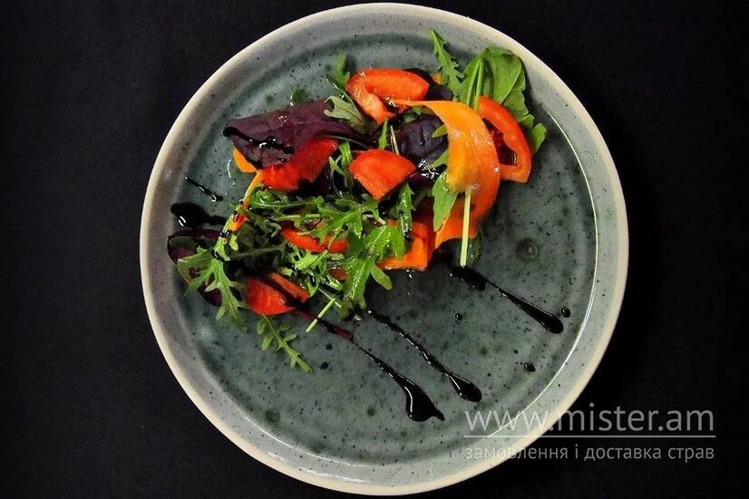 Мікс салату, помідор чері, морква, гірчична заправка.