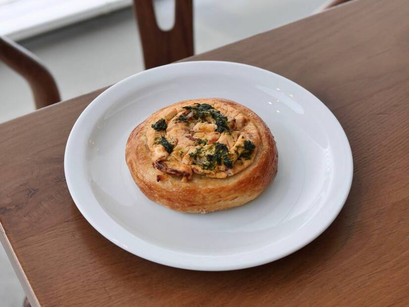 Ніжний бріош з крем чізом, вʼяленими томатами та пікантним чімічурі