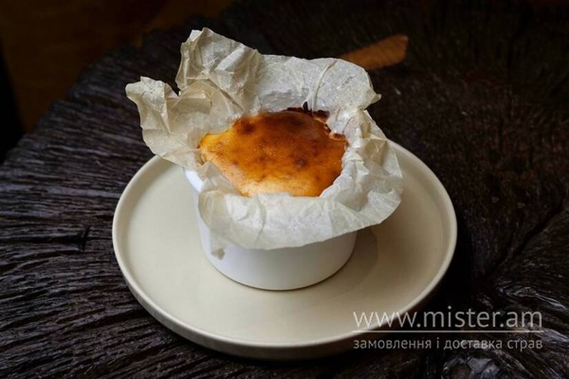 Надзвичайно ніжний, ледь вологий з середини та підгорілий ззовні, в міру солодкий.