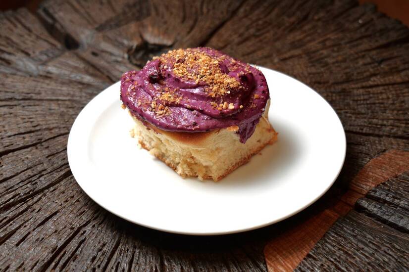Пухке дріжджове тісто з смородиновим джемом всередині та ягідно-сирним кремом