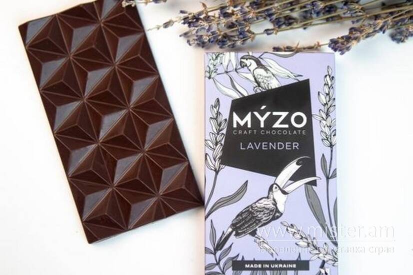 Лавандовий шоколад. Myzo Chocolate - це підприємство сім'ї ветерана, яке виготовляє шоколад із сортів какао Кріоло та Тринітаріо за принципом bean to bar: закуповуючи сировину безпосередньо у фермерів. Какао походить із Коста-Ріки, а виробничі потужності – в рідному Луцьку.