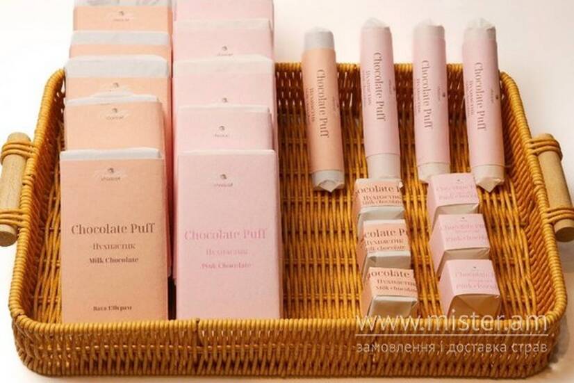 З фісташковою дубайською начинкою та ніжними хмаринками турецького пішман'є. Є у двох варіаціях - рожевий з білим шоколадом і бабл гам; з молочним шоколадом і ароматом дині.