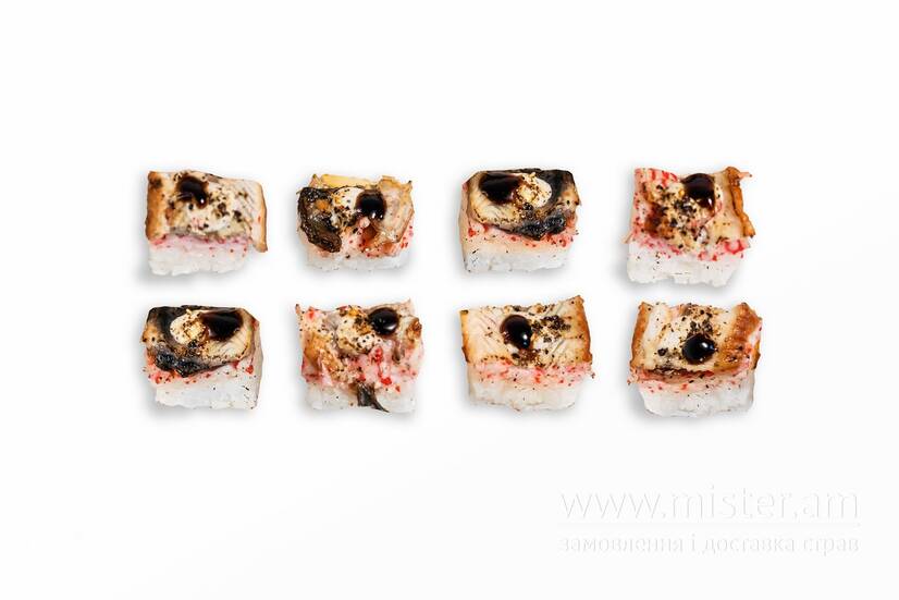Рис, сніжний краб, тобіко, майонез трюфельний, вугор, унагі.