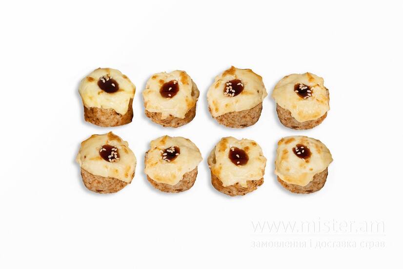 Рис, цибулевий кранч, крем сир, вугор, сирний соус, унагі.