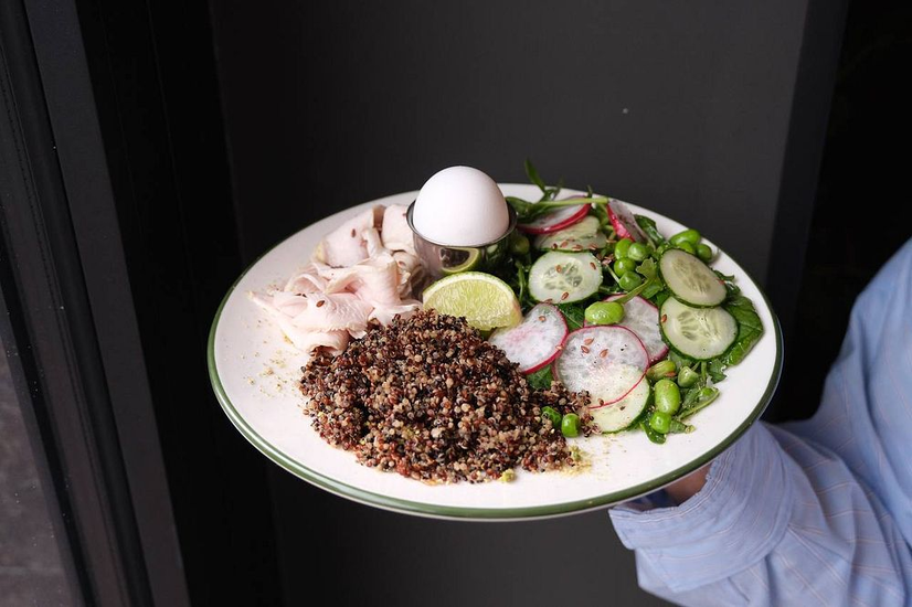 Поєднання нежирного м’яса, зелені, овочів і джерела корисних жирів допомагає регулювати апетит, знижує запалення та підтримує гормональний баланс. Кіноа додасть насичення та підтримає нервову систему, завдяки магнію та іншим мінералам.