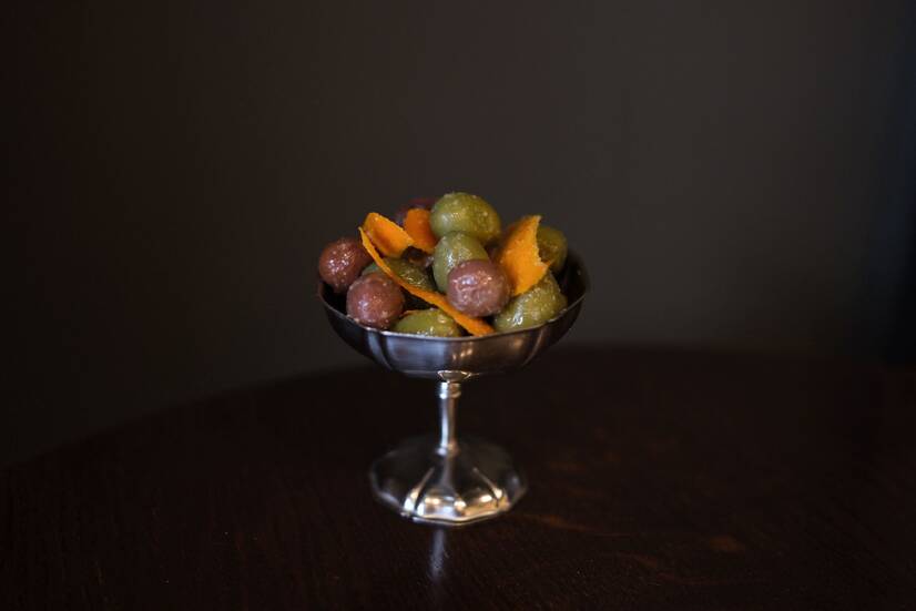 Фіолетові та зелені оливки з кісточкою, мариновані в оливковій олії з нотами часнику та цитрусової цедри. Свіжий і яскравий акцент для легкої закуски або аперитиву.